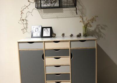 Mobile reoler med plads til kurve, skuffer, spil-hylder, skabe, er nogle af de indretningsmuligheder der er i en reol fra ROLIGHED HUMANIA. Vi er altid parate til at samarbejde med jer for at finde de bedste løsninger. Om det er en mobil reol, på sokkel eller væghængt reolen, igen er det hvad der passer bedst ind hos den enkelte kunde.